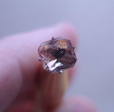 I aim to keep facets free of noticeable scratches and chips, but since I cut mostly by eye, minor imperfections may occasionally be visible under magnification. Small issues with facets, meet points, or girdles may occur, but any stone with major optical flaws will not Make it to the website. Minor imperfections will be disclosed in the description. All stones are precision cut and are expected to exceed typical commercial quality.
